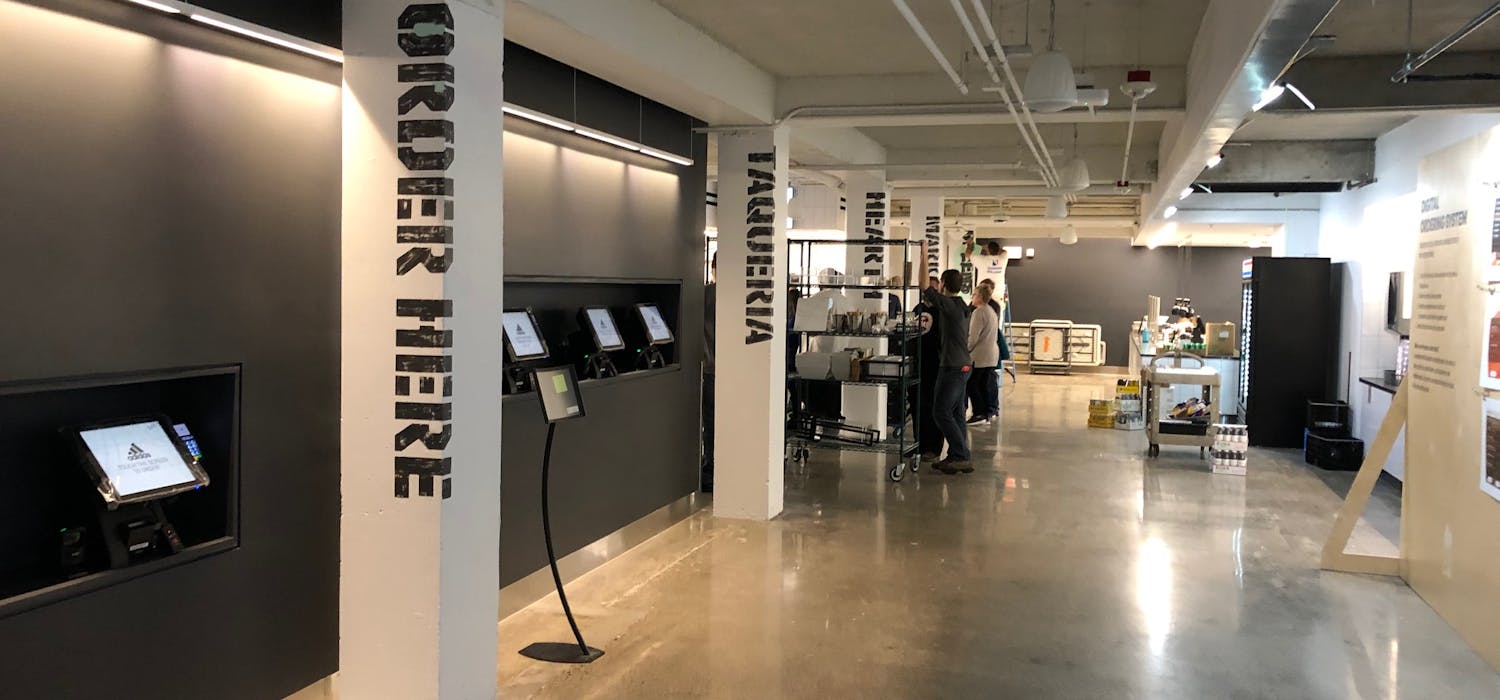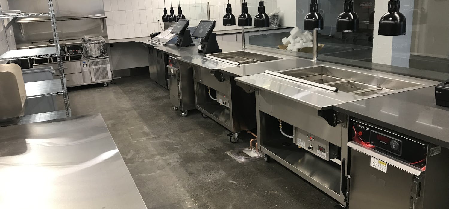 Transformation of the dining experience at the Adidas World Headquarters building was no small feat, requiring the addition of a new building between two existing structures. The Bargreen Ellingson Design + Build Team was brought on to assist in creating an updated cafe and dining area, two catering kitchens, and additional serving stations within the new building. Strategically adding separation between the two kitchen/servery areas offered greater operational flexibility, and the addition of holding cabinets, self-ordering kiosks, and a dish drop carousel reduced wait times for employees.