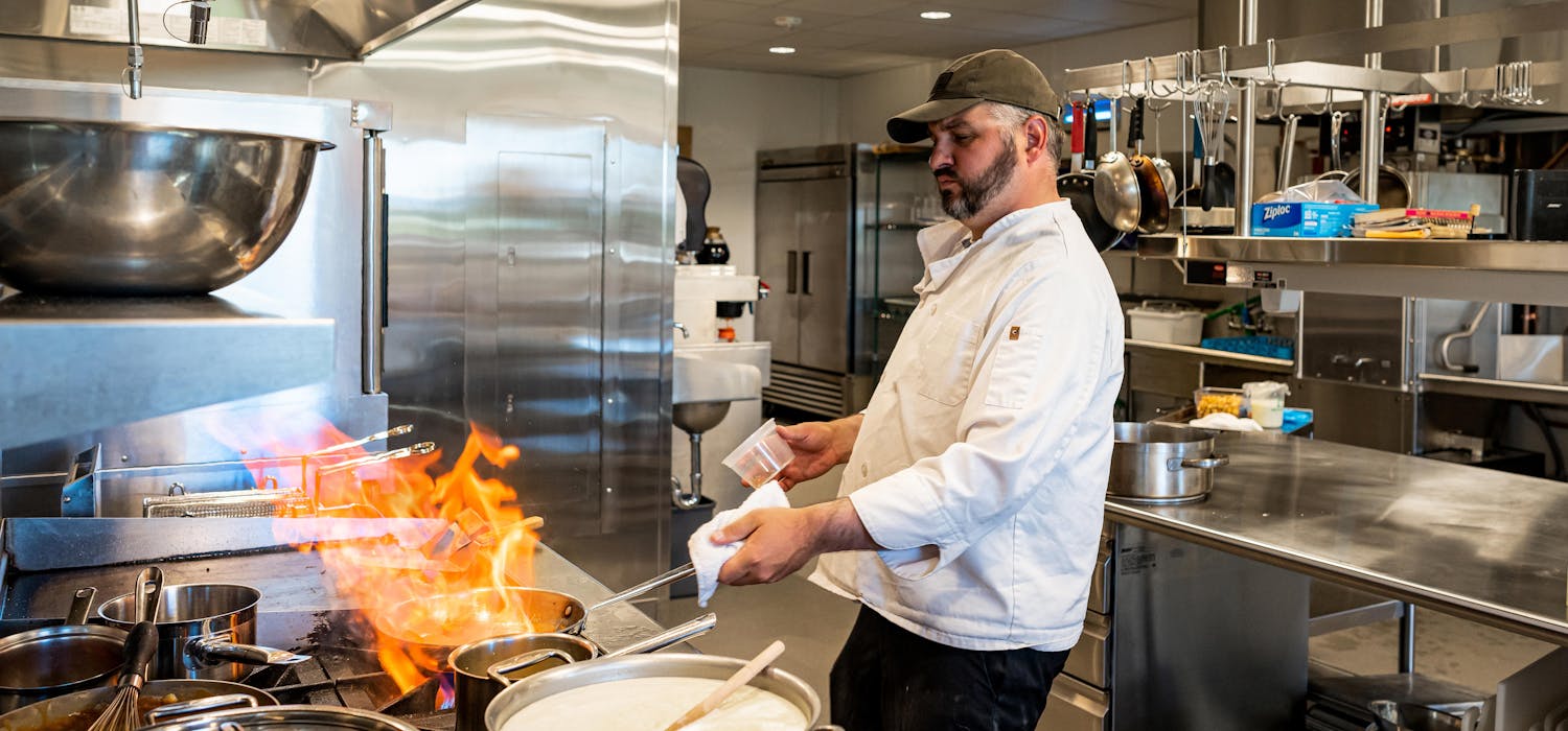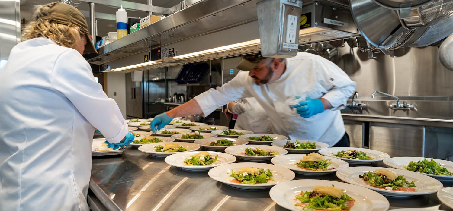 Madison Valley Ranch is an award-winning, fly-fishing lodge located outside of Ennis, MT. Working with HC Design & Consulting, Bargreen Ellingson revamped the kitchen ergonomics and equipment to better meet the demands of their custom operation. A stainless-steel center island and plating counter with overhead heating lamps were outlined for flow and function. Cooktops, wash stations, and mounted racks were installed around the perimeter for space savings and additional workstations.
