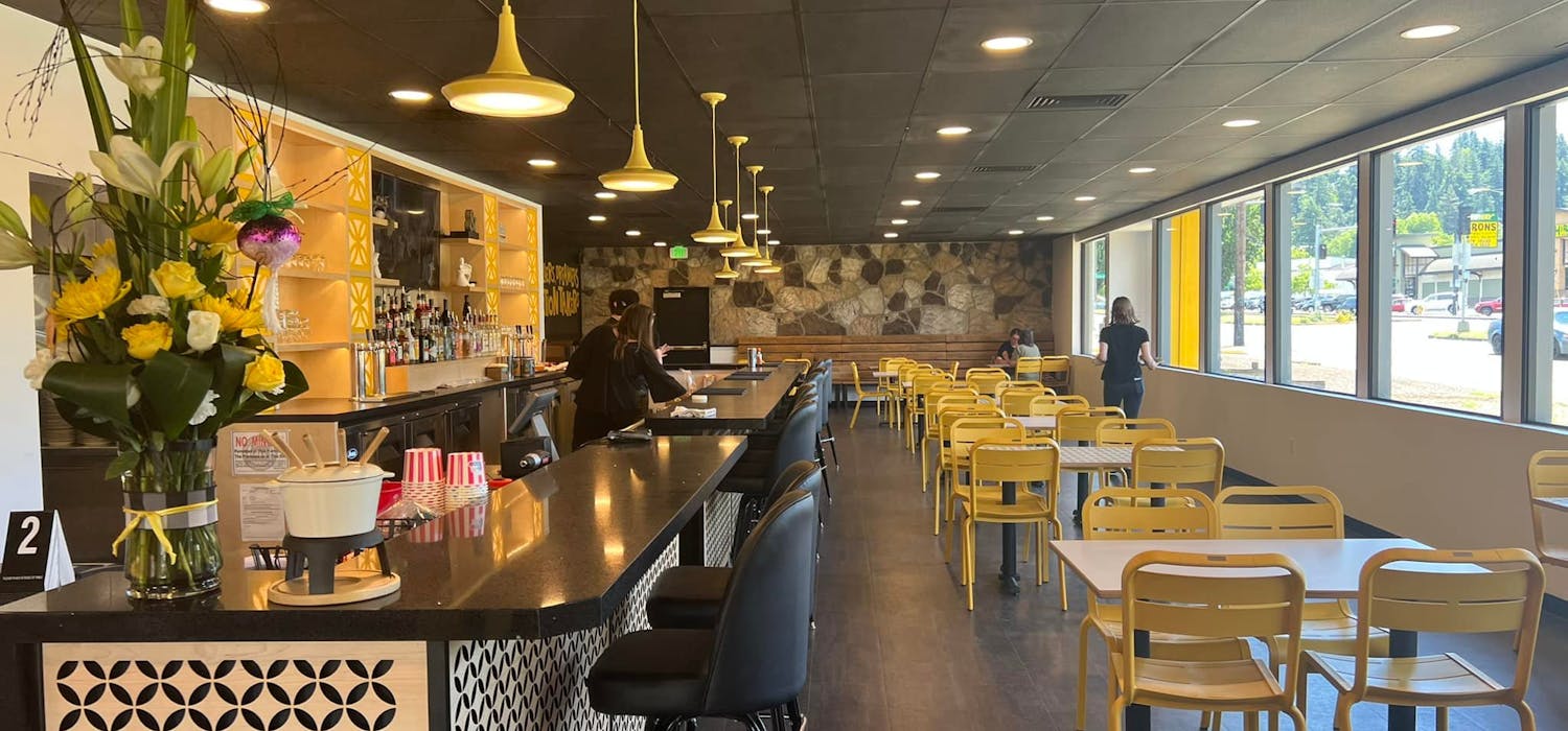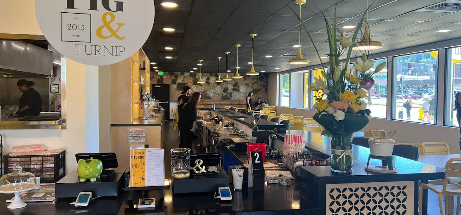 Pig & Turnip is a contemporary take on German-ish cuisine with a mix of old-world charm and a modern atmosphere. It started as a food cart operation in 2015 and has evolved into a freestanding location in 2022. In Bargreen Ellingson's second project with Shield Bistro owner Natasha Shield, this new quick-service restaurant is a high-volume, to-go operation, which includes a full bar that serves as the focal point of the dining room and features innovative robotic servers. With a walk-up ordering counter, the restaurant seamlessly flows into the bar with southern windows, allowing passersby a view into the inviting space.